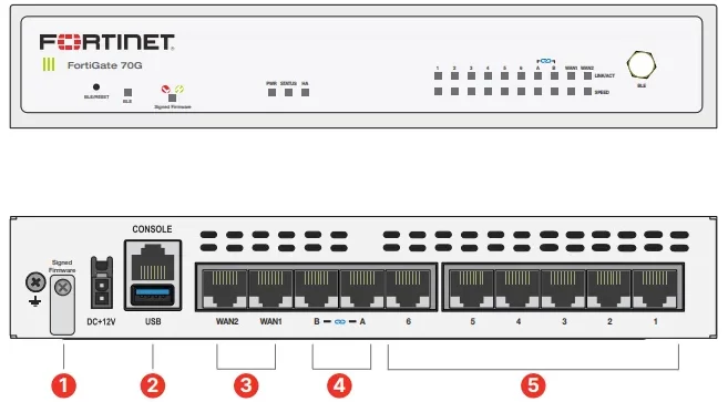 - پورتهای FortiLink (پورتهای دوگانه A و B): جهت اتصال FortiSwitchها برای مدیریت یکپارچه